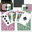 The COPAG 1546 set includes two decks—one green and one burgundy. Each deck comprises 52 cards, 2 jokers, and 1 guarantee card, making it perfect for a variety of card games. The decks are housed in a robust hard plastic storage case, ideal for secure storage and convenient transport.