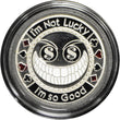 I am not Lucky poker card guard helps protect poker cards from being accidentally exposed, fouled, or folded. During a game, players must keep their cards face down near their poker chips. Placing this poker card protector over the cards prevents dealer errors and accidental mucking.