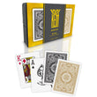 This set includes one black deck and one gold deck of KEM Arrow Poker Size Wide Jumbo Index Playing Cards, each meticulously crafted for optimal performance. The poker size (2.5” x 3.5”) and wide jumbo index provide clear visibility and easy handling, allowing you to read your hand quickly and easily during intense games. Whether you’re dealing cards at a poker table or enjoying a round of blackjack, these poker cards deliver flawless performance every time.
