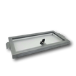 The tray is made of a durable silver steel with a locking metal framed see through cover of thick clear acrylic.