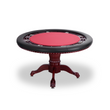 The Mystic 2-in-1 8-Player Round Poker/Dining Table - Red Surface, Dark Brown Pedestal Legs